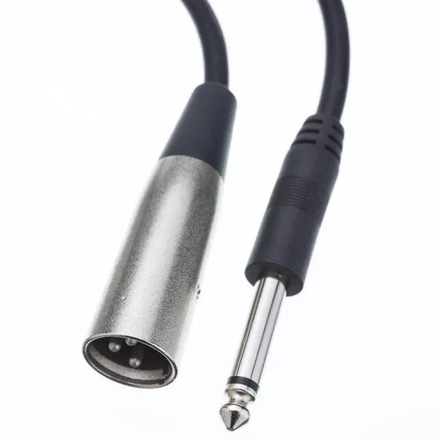 15 foot XLR Male to 1/4 inch Mono Male Audio Cable. Our 15 foot 3-Pin XLR Male to 1/4 Inch Mono Male Audio Cables are built with high quality XLR and 1/4 inch connectors and audio cable for maximum signal transfer and RF/EMI noise resistance. The high density shield blocks electrostatic noise, eliminating annoying hum, buzz, radio interference and noise.