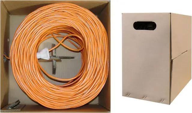 Plenum Cat6 Bulk Cable, Orange, Solid, UTP (Unshielded Twisted Pair), CMP, 23 AWG, Pullbox, 1000 foot