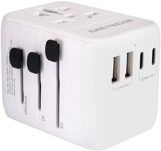 All-in-One International Plug Adapter Universal Travel Adapter with Surge Protector and PD 35W Dual USB 3 Type C Ports Outlet Extender for USA AU EU UK