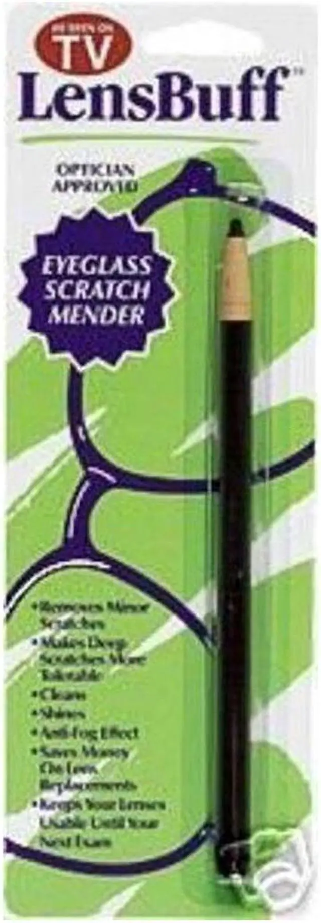 LensBuff by Cadie - Eyeglass Scratch Remover! Removes annoying minor scratches by polishing and filling them. Super-fine crystalline polymer materials bond with the surface of the lens to restore old eyeglasses to look like new. Quick and easy to use. Saves money by eliminating the need for costly lens replacement. It Works on eyeglasses, sunglasses, and goggles. Minor scratches disappear entirely & deep scratches become considerably less noticeable. (Does not work on anti-reflective coated lenses). Cadie Lens Buff Eyeglass Scratch remover works on all types of lenses and will restore your glasses to look new again.