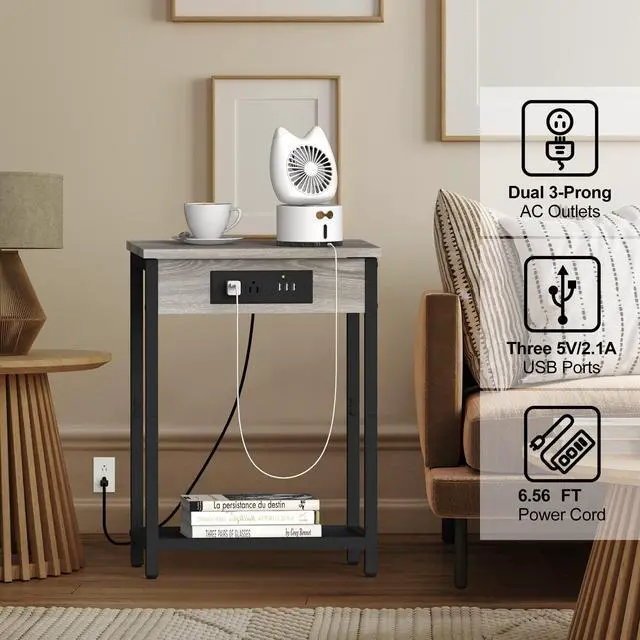 | Package Include | 2 Pack Side Table with Charging Station, Assembly Kit and Instruction |