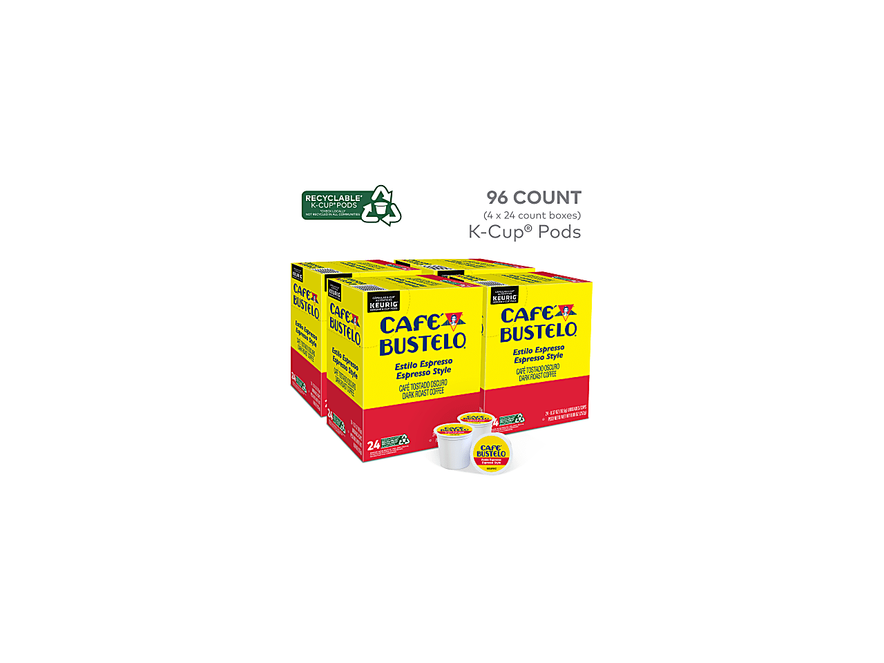 Cafe Bustelo Keurig Caf Bustelo Single Serve Pods, Espresso Roast, Classic, Box Of 24 Pods, Case Of 4 Boxes