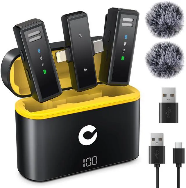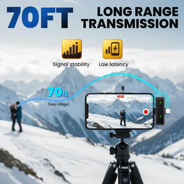 Professional-Grade Audio Freedom in One Compact System: Instantly connect to any device via Lightning (iPhone/iPad), USB-C (Android/Mac), or USB-A (PC) no adapters needed. Advanced DSP chip + foam windscreen blocks 90% background noise (wind/traffic/keyboards) for crystal-clear podcasts, streams, and vlogs. The 600mAh charging case delivers 35 hours total runtime (7hrs/mic × 5 charges), while the revolutionary receiver charges your phone during recording never interrupt live streams. Enjoy 70ft wireless range and dual-mic sync for interviews, duo presentations, or dynamic content creation.