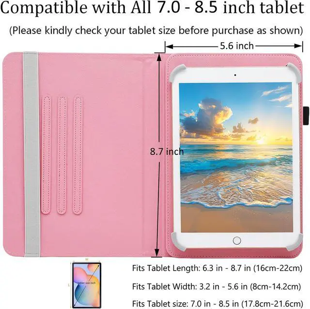 Band Design: Elastic band is flexible enough to fit all 7.0 - 8.5 inch tablet strong elastic band holds your tablet firmly and keep your device in place safely360
