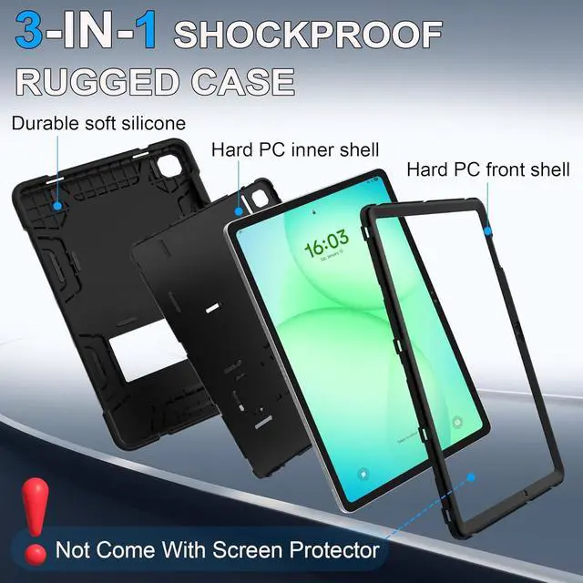 (Note: Screen protector not included). Military-Grade Armor for Real-Life DropsEngineered with an ultra-soft rubber exterior and an internal hard PC shell to create a 3-layer defense system. Whether it's a tumble from a coffee shop table or a slip in the classroom our shockproof design absorbs impacts keeping your device scratch-free and intact. Ergonomic Kickstand for Work & PlayThe built-in sturdy kickstand offers two viewing angles: a steep angle for productive typing/emails and a relaxed angle for immersive movie binge-watching or video calls. Free your hands and reduce neck strain during long-haul travel or work sessions. Anti-Slip Muscle Bump GripFeatures an innovative easy-to-grab muscle bump design providing a secure anti-slip texture for both kids and adults. The raised bezel guards your camera lenses against dirt and direct surface contact ensuring your photos remain crystal clear. Buy with Confidence & 6-Month Peace of MindYour investment is protected by a 6-month hassle-free warranty. Our responsive customer service team is available 24/7 to provide prompt satisfactory assistance for any installation or usage questions.
