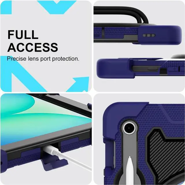 Compatibility Fits Tab S10 Lite/S10 FE/S9 FE 10.9 and Tab S9 11 (SM-X520/X526B/X528U; SM-X510/X516B/X518U; SM-X710/X716B/X718U). Verify model before purchase to ensure perfect port and camera alignmentMIL-STD-810G Drop Protection Survives 26 drops from 5 feet onto concrete per military test standards. Dual-layer TPU + PC shell delivers 10× impact resistance for real-world protection in office classroom or field useAuto-Retract Kickstand Market-first one-touch auto-retraction. Simply lift to deploy push to stowno loose parts no fumbling. Integrated S Pen holder keeps your stylus secure (Pen not included) 360° Rotating Hand Strap Multi-angle kickstand and rotating strap adapt to presentations document review or navigation.