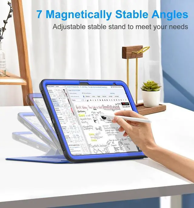 Strong Magnetic Multi-Angle: Hands-Free Versatility; Enjoy up to 6 adjustable viewing angles for comfortable typing hands-free video watching or precision drawing. The powerful built-in magnets not only lock the stand securely in place but also let you attach your iPad to any smooth metal surface (like a refrigerator or locker) ideal for following recipes in the kitchen or watching movies on the go.