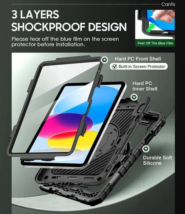 With Screen Protector: This case for ipad A16 with screen protector which is made of durable hard pc & upgraded thickened soft silicone to protect against the impact of accidental drops. 3-layer shockproof design provides full protection from daily bumps and scratches with a comfortable non-slip grip.