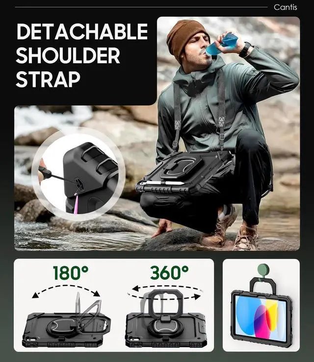 Adjustable Shoulder Strap: The detachable and adjustable shoulder strap allows you to carry your ipad case 11th/ 10th generation more comfortably or hang it securely wherever you need it-ideal for work school or travel.