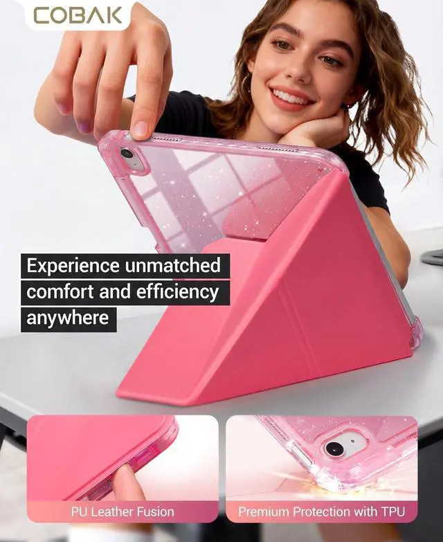 Protetion & Precise Cutouts: With durable PU Leaher front cover and glitter TPU back shell the case provides full protetion protection for you iPad while gives a stylish look. Precise cutouts allow access to all ports and buttonsAuto