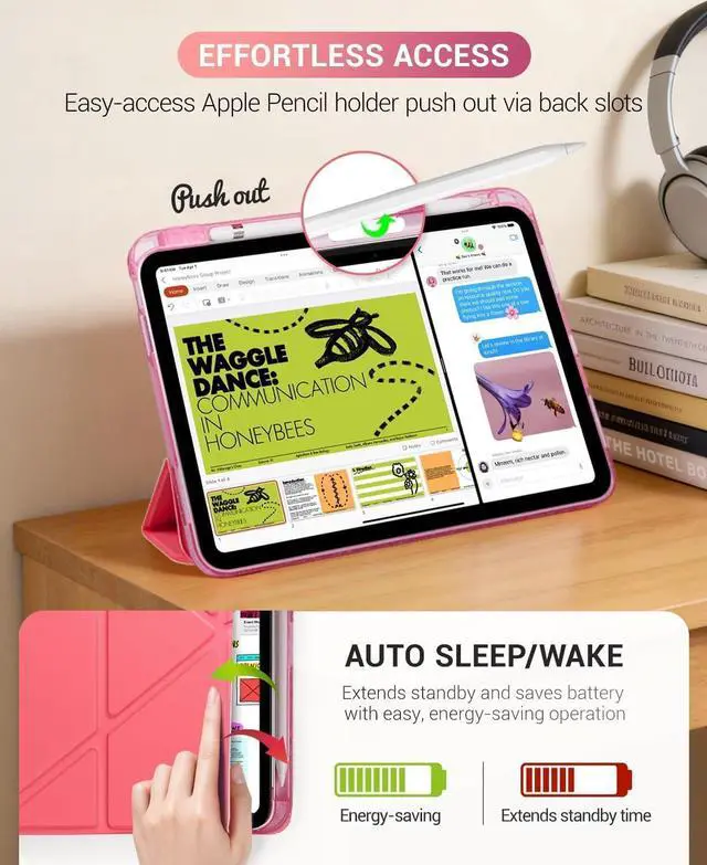 Wake/Sleep: The built-in magnetic feature automatically wakes up or puts your iPad to sleep when the lid is opened or closed. Help saving battery life and maximizing power efficiency