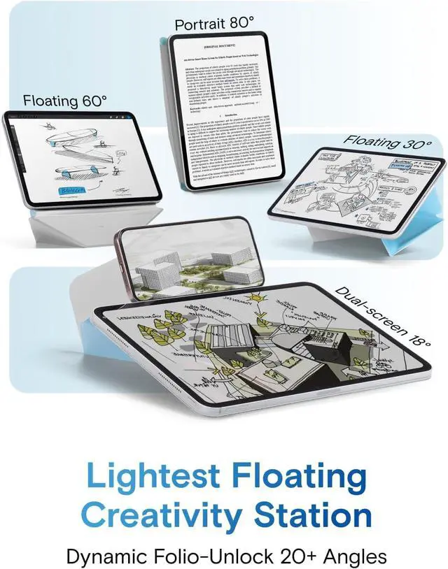 Note: It will not be compatible other model. Please check your iPad model before purchase. For questions about compatible models please feel free to contact us. Dynamic Angles Move with Flow - The Dynamic Folio with 20+ adjustable angles for iPad offers fluid angle adjustments that flow with your every need. Effortlessly shifting from work to creativity it combines minimalist design with versatile functionality enhancing your dynamic lifestyle. Ultimate Ergonomic Floating Modes - MOFT Dynamic Folio Case makes iPad ergonomics effortless for mobile creativity - featuring a single-piece structure that effortlessly folds into a workstation lifting iPads up 2-inches. Frictionless angle shifts between 30° and 60° keep you aligned in your input-output framework. As Light As 14oz - Like a thin yet powerful sheet of paper wrapping around your iPad this folio offers effortless protection and versatile angles - perfect for any scene without the added bulk all at just 14oz. Magnetic Flexibility - Effortlessly adjust angles and elevate your device with confidence. Super-strong N52 magnets provide secure support while the lightweight yet durable fiberglass structure ensures stability.