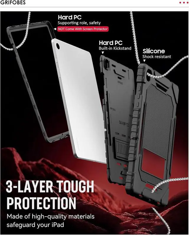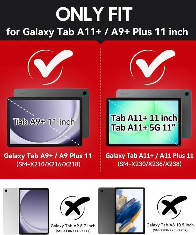 A9+ Plus 2026/2024 11inch (Model: (SM-X230/X236/X238/X210/X216/X218) / Tab A11+ 5G / Tab a9+ 5G 11[Shockproof Rugged]- Grifobes tab A11+/A9+ 5g case is made of high quality flexible Silicone and durable hard PC provides a Military Grade Protection to your tablet against scratches and accidental drops bumps shock[Functional Kickstand]- Choose optimal viewing and typing positions (2 Mode) based on your needs that allows easy access to your favorite shows movies and games while on the go when taking tablet s6 lite case[Precise Cutouts]- It's easy to access all buttons speakers cameras and sensors all the ports are where they should be. Grifobes A11/A9 Plus 5g case is also worth offering a practical gift choice for children students tooWhat's in the package: Case installation Manual installation tools.