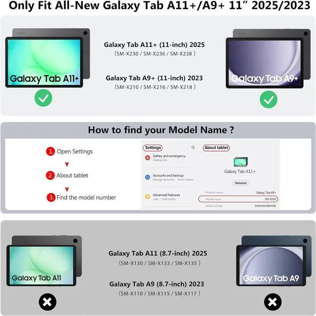 Compatibility: TiMOVO specially designed for Tab A11+ 11 Inch 2026 SM-X230/? X236/?? X238; Tab A9+ 11 Inch 2023 SM-X210/X216/X218.