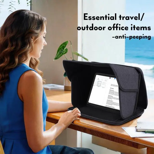 Design: Not only does this bag serve as a sunshade to prevent screen glare and protect your privacy but it also functions as a storage solution with additional pockets for storing pens and other essentialsVersatile