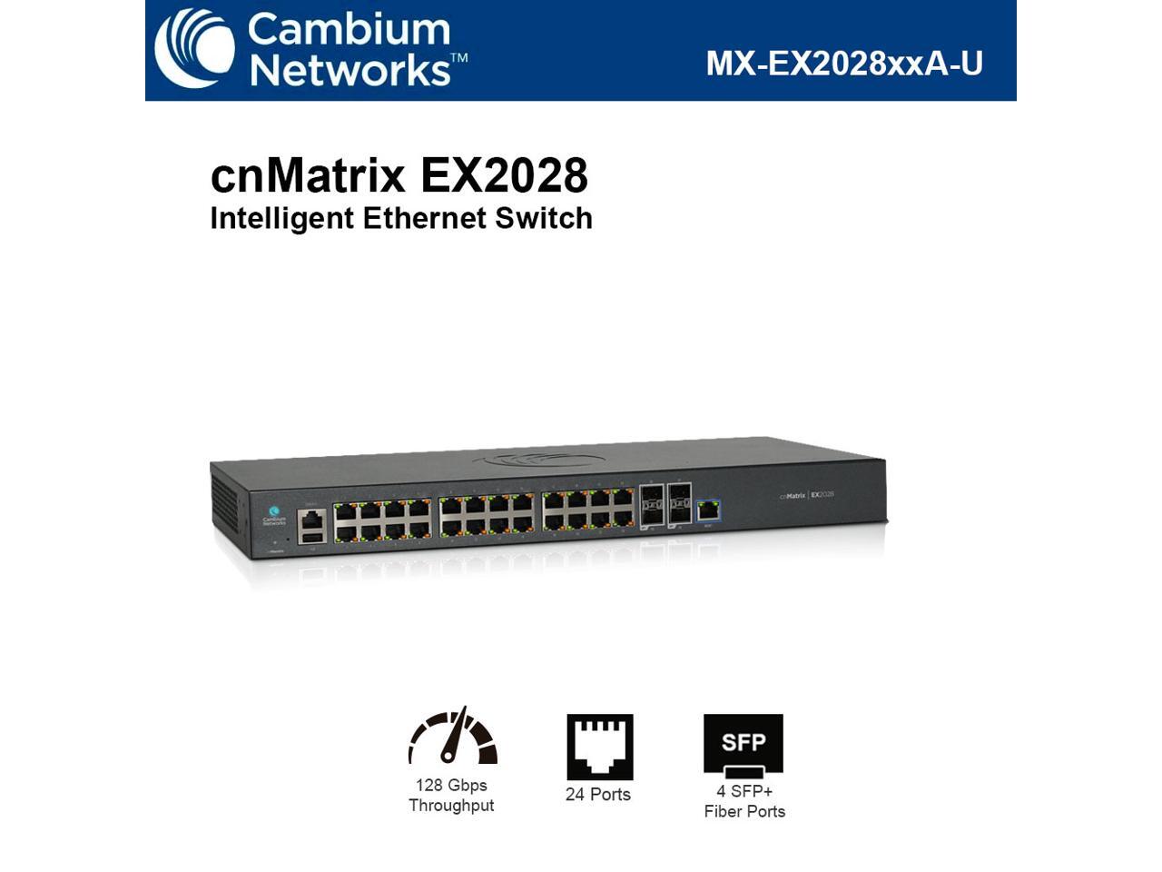 Cambium Networks - MX-EX2028XXA-U - Cambium cnMatrix EX2028, Intelligent Ethernet Switch, 24 1G and 4 SFP+ fiber ports -