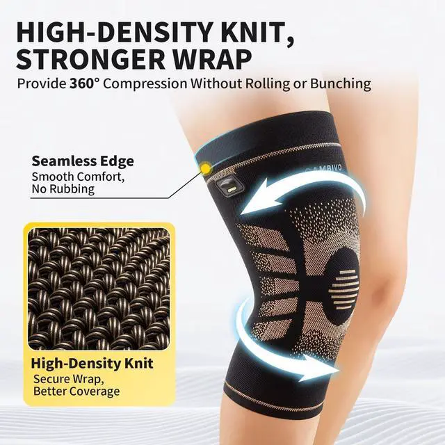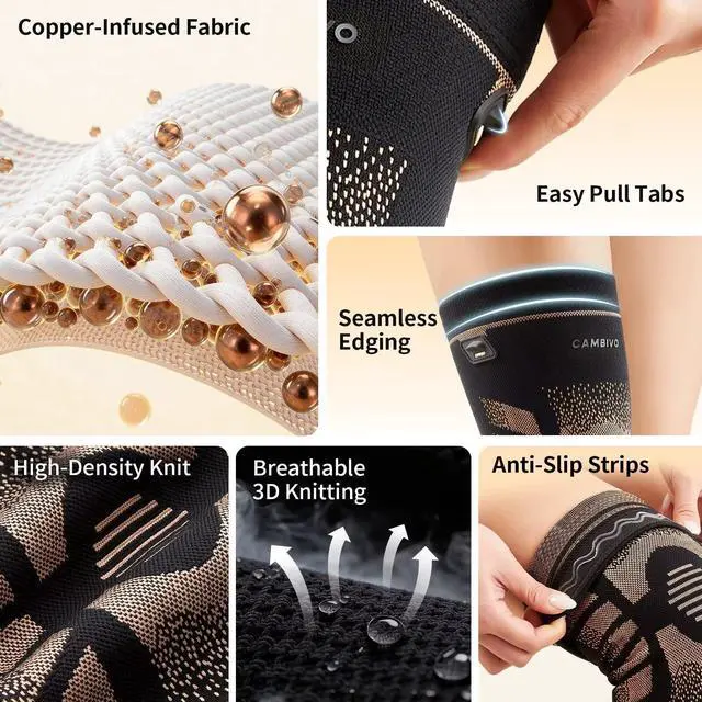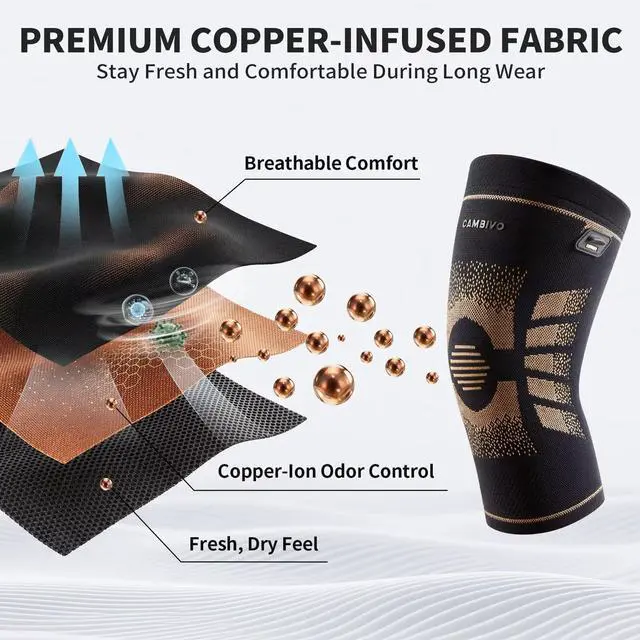 : Crafted with copper-ion infused fibers that help minimize odor buildup and keep the fabric feeling fresher, making the knee brace for men and women ideal for extended wear or sweaty activities; designed to address the common issue of knee sleeves feeling stuffy and uncomfortable after long hours