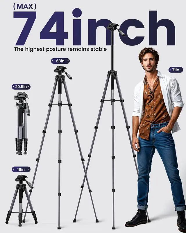 SAB65B 74 inch Tall DSLR Camera Tripod