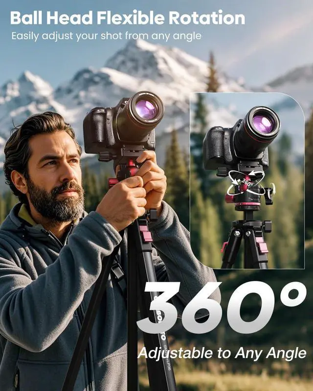 STYLISH, ELEGANT, AND STABLEThis DSLR/SLR tripod features a triangular cross-section for the central column, providing excellent stability while adding to its aesthetic appeal. The legs are designed with a unique hexagonal shape, which, when collapsed, fit tightly together with the central column and other components. This compact design not only enhances portability but also maintains a sleek, modern look without compromising strength.