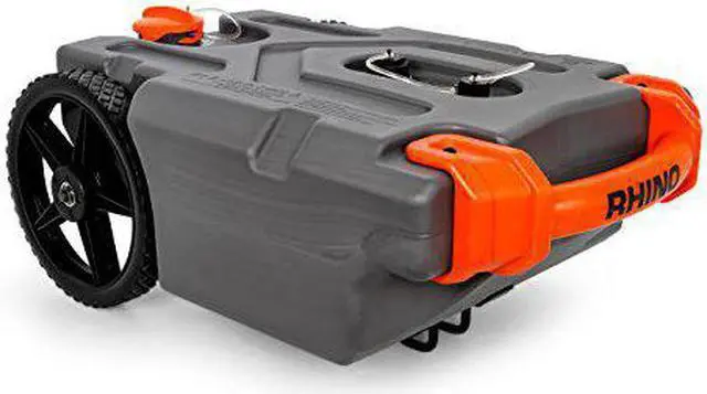 This Camco Rhino 15-Gallon Tote Tank is the durable, everything-you-need tote tank kit to fill, empty, clean, store and tow your tote tank when you’re too far away from a dump station to use a sewer hose. This RV waste tote tank is rugged, heavy-duty, and designed with the ease of use in mind. Everything from the interior to the exterior to the accessories included make a dirty job as simple and straightforward as possible