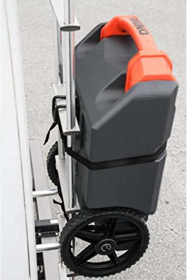 Constructed of durable blow-molded, UV stabilized HDPE that won’t leak or deteriorate in the sun. With zinc-plated hardware, rust and corrosion are prevented. The inside of the tote tank is smooth so that it doesn’t trap odors or debris, and is sloped toward the drain hole, making it easy to empty. The handle is oversized and durable, allowing you to pull or tow the tote tank without worry. The bottom of the tote tank features an integrated ladder hook, allowing you to hang the tank on your RV’s ladder when it is empty, and tie-down grooves to hold it in place with straps. This ready-to-use kit includes everything needed to transport waste from your RV or trailer to a dump station.
