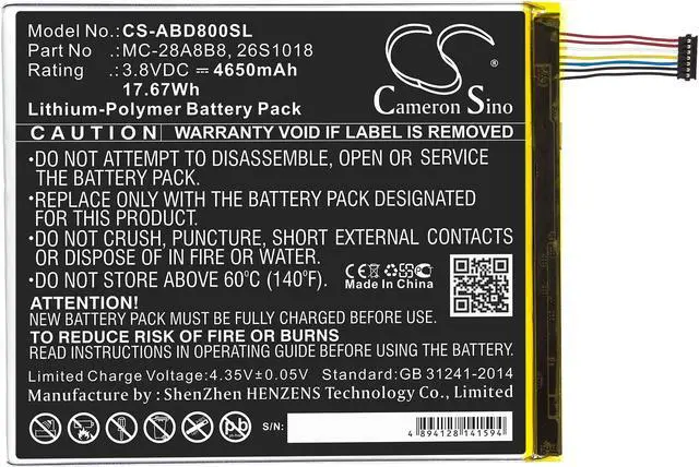 Battery for Amazon Kindle Fire HD 8 PR53DC 26S1018 58-000161 MC-28A8B8 Tablet Compatible with the following devices Kindle Fire HD 8, PR53DC Compatible with Battery Part Numbers 26S1018, 58-000161, MC-28A8B8