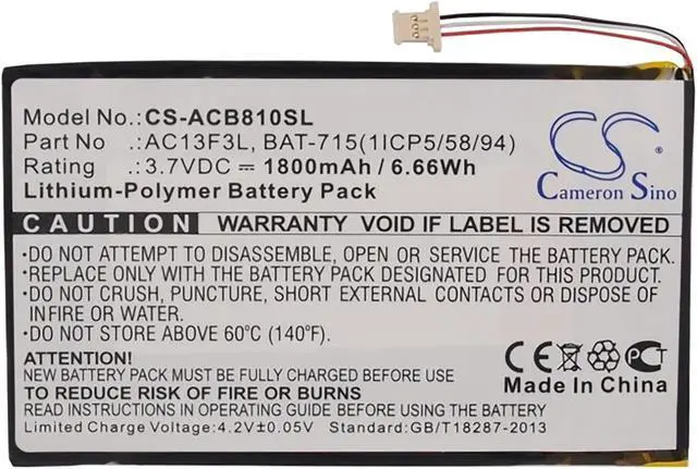 Battery for Acer B1-A71 Iconia B1-A71 Iconia B1-A71-83174G00nk Tab B1 Compatible with the following devices B1-A71, Iconia B1-A71, Iconia B1-A71-83174G00nk, Tab B1 Compatible with Battery Part Numbers BAT-715(1ICP5/58/94), KT. 0010G.