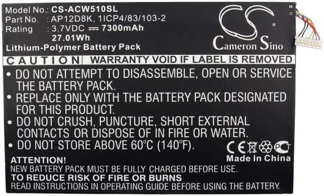 Battery for Acer Aspire P3-171-3322Y2G06as Aspire P3-1715333Y2G12as Iconia Compatible with the following devices Aspire P3-171-3322Y2G06as, Aspire P3-1715333Y2G12as, Iconia A3-A10, Iconia A3-A10-81251G01n, Iconia A3-A10-81251G03n, Iconia A3-A10-L662, Iconia A3-A10-L879, Iconia A3-A11, Iconia Tab A3, Iconia Tab A3-A10, Iconia TAB A3-A11, Iconia Tab P3-171, Iconia Tab W510, Iconia TAB W510 64GB, Iconia Tab W510P, Iconia TAB W511, Iconia TAB W511P, Iconia W510, Iconia W510 32GB, Iconia W510 64GB, Iconia W510-1422, Iconia W510-1431, Iconia W510-1458, Iconia W510-1620, Iconia W510-1654, Iconia W510-1666, Iconia W510-1674, Iconia W510-1892, Iconia W510-27602G03iss, Iconia W510-27602G06ass, Iconia W510-27602G06iss, Iconia W510P, Iconia W510P-1406, Iconia W510P-1867, Iconia W510P-27602G06iss, Iconia W511, Iconia W511-27602G06ass, Iconia W511-27602G06iss, Iconia W511P, Iconia W511P-27602G06iss, IconiaTAB W510 Compatible with Battery Part Numbers 1ICP4/83/103-2, AP12D8K