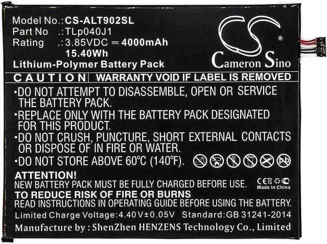 Battery for Alcatel 8082 9024W 9029Z A30 Tablet A30 Tablet 4G LTE Joy Tab Compatible with the following devices 8082, 9024W, 9029Z, A30 Tablet, A30 Tablet 4G LTE, Joy Tab Compatible with Battery Part Numbers TLp040J1, TLP040K7