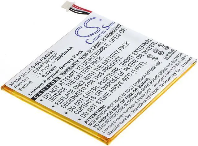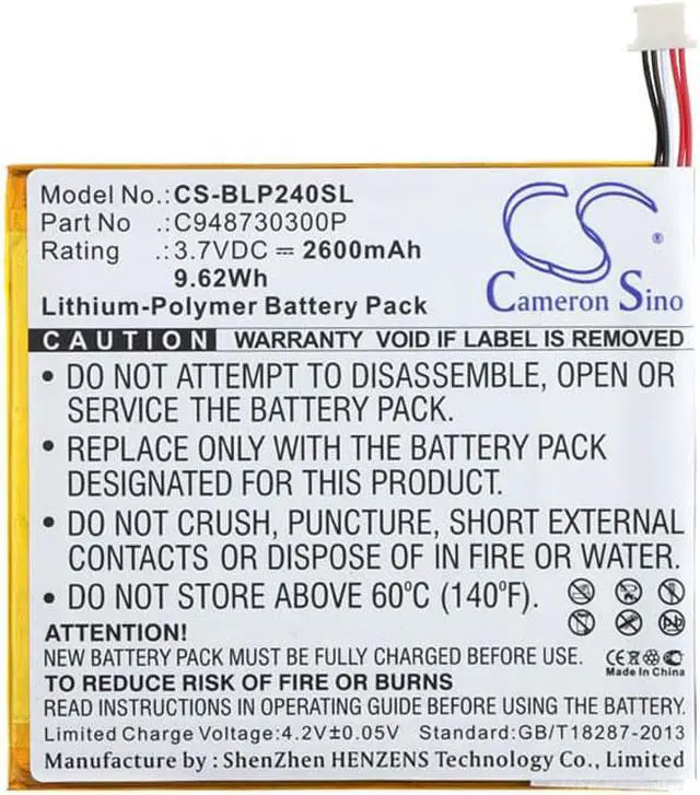 Battery Part Numbers C948730300P Capacity: 3.7VV 2600mAh / 9.62W h