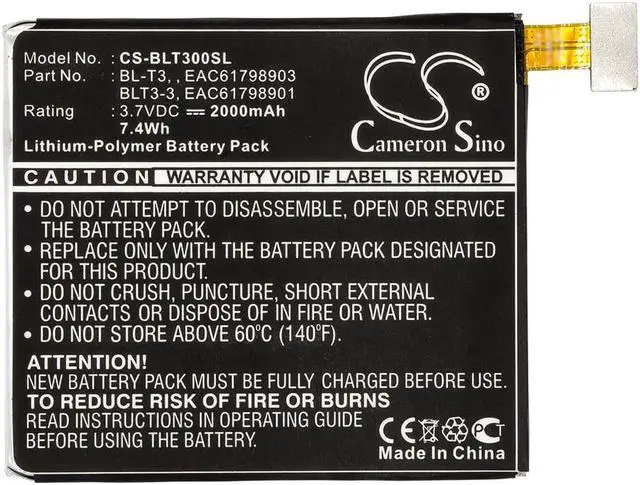 Battery for LG F100 F100K F100L F100S Intuition Optimus Sketch Optimus Vu Compatible with the following devices F100, F100K, F100L, F100S, Intuition, Optimus Sketch, Optimus Vu, Optimus Vu LTE, P895, VS950 Compatible with Battery Part Numbers BL-T3, BLT3-3, EAC61798901, EAC61798903