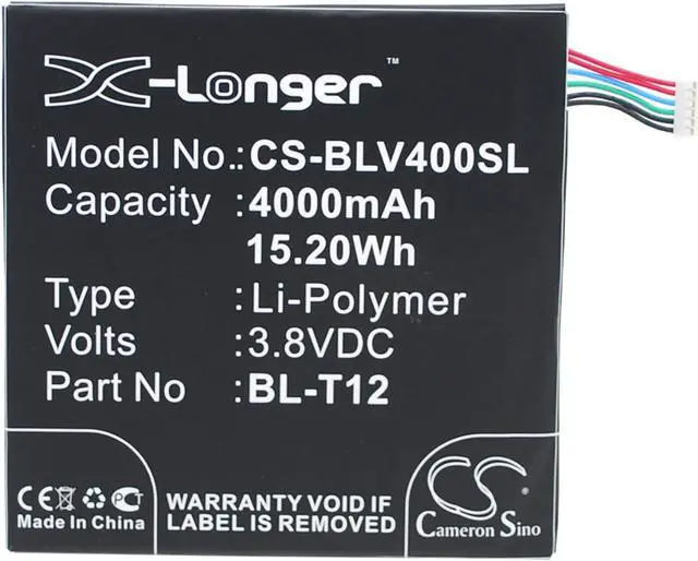 Battery for LG Pad 7.0 V400 V410 BL-T12 EAC62438201 Tablet CS-BLV400SL 3.8 v Compatible with the following devices Pad 7.0, V400, V410 Compatible with Battery Part Numbers BL-T12, EAC62438201