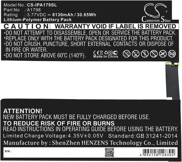 Battery Part Numbers A1798 Capacity: 3.77V 8130mAh / 30.65W h