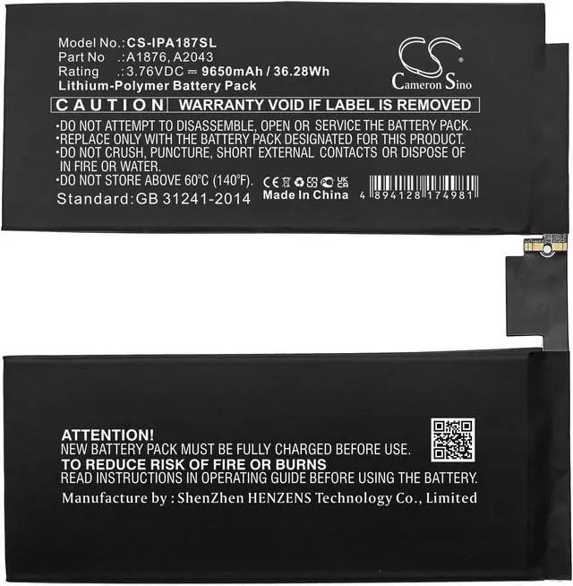 Battery for Apple A1876 A1895 A1983 A2014 A2069 A2229 A2232 A2233 iPad Pro 12.9 Compatible with the following devices A1876, A1895, A1983, A2014, A2069, A2229, A2232, A2233, iPad Pro 12.9 2018 3rd Gen, iPad Pro 12.9 3rd, iPad Pro 12.9 4th Compatible with Battery Part Numbers A1876, A2043