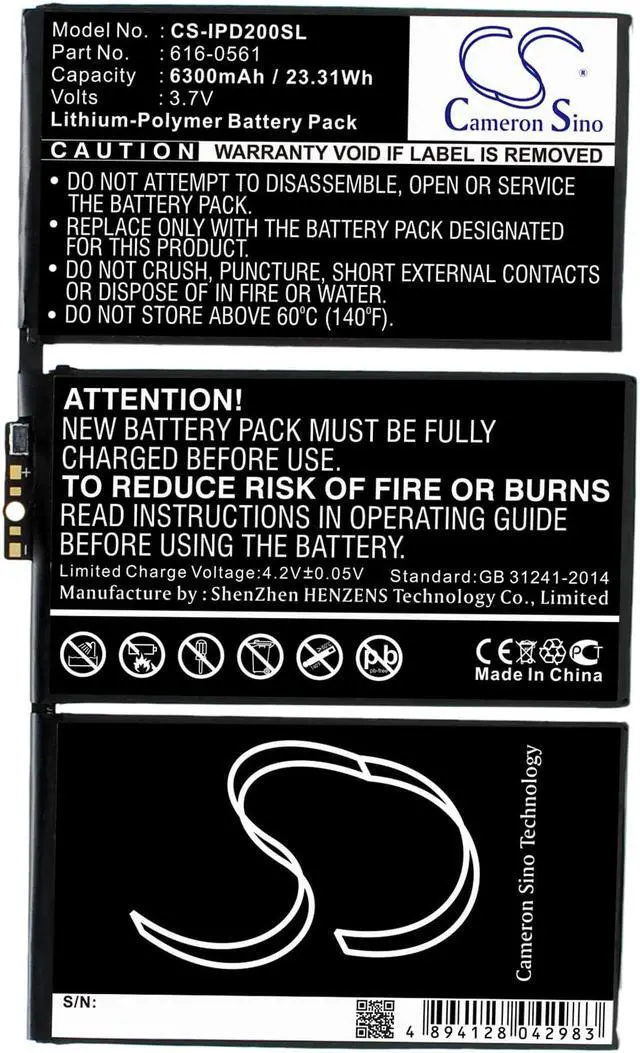 Capacity: 3.7V 6300mAh / 23.31W h