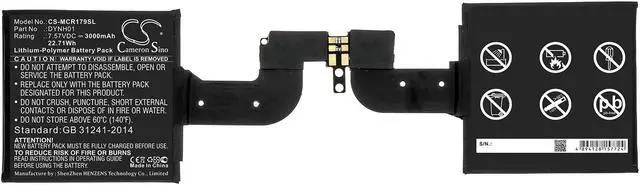 Battery Part Numbers DYNH01 Capacity: 7.57V 3000mAh / 22.71W h