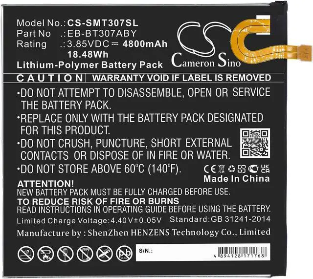 Battery Part Numbers EB-BT307ABY Capacity: 3.85V 4800mAh / 18.48W h
