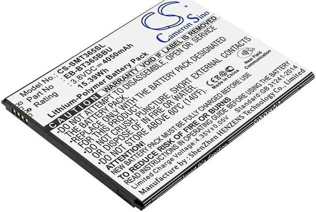 Battery for Samsung Galaxy Tab Active Galaxy Tab Active 2 Galaxy Tab Active 2 Compatible with the following devices Galaxy Tab Active, Galaxy Tab Active 2, Galaxy Tab Active 2 8.0, Galaxy Tab Active 2 8.0 LTE, Galaxy Tab Active 2 8.0 TD-LTE, Galaxy Tab Active 2 8.0 WiFi, Galaxy Tab Active 4G, Galaxy Tab Active 4G LTE, Galaxy Tab Active 8.0, Galaxy Tab Active WiFi, M-T395C, SM-T360, SM-T360NNGAXAR, SM-T360UD, SM-T365, SM-T365 Galaxy Tab Active LTE, SM-T365F0, SM-T390, SM-T390 Galaxy Tab Active 2 Wi, SM-T390N, SM-T395, SM-T395 Galaxy Tab Active 2 LT, SM-T395N Compatible with Battery Part Numbers EB-BT365BBC, EB-BT365BBE, EB-BT365BBU, EB-BT365BBUBUS, GH43-04317ASupport