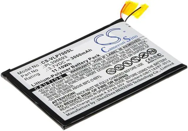 Battery Part Numbers PL396693 Capacity: 3.7V 3000mAh / 11.10W h