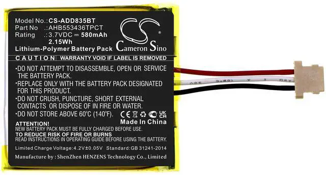 Cameron Sino Battery for ADT DBC835, DBC835-V2, Wireless HD Doorbell Camera PN:ADT AHB553436TPCT 580mAh / 2.15Wh