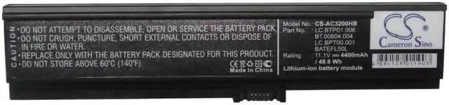 Mi, TravelMate 3274WXMi, TravelMate 4310 Compatible with Battery Part Numbers 3UR18650Y-2-QC261, BATEFL50L, BATEFL50L6C40, BATEFL50L6C48, BATEFL50L9C72, BT. 00603.006, BT. 00603.010, BT. 00604.001, BT. 00604.004, BT. 00604.012, BT. 00903.007, CGR-B/6H5, LC. BPT 00.001, LC. BTP 00.001, LC. BTP 00.002, LC. BTP 01.006, LIP6220QUPC-SY6