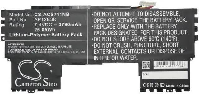 Battery Part Numbers AP12E3K Capacity: 7.4V 3790mAh / 28.05W h