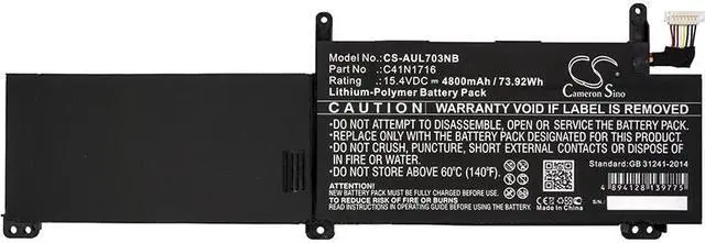 Battery for Asus GL703GM GL703GM-0051A8750H GL703GM-71200T GL703GM-78B06CS1 Compatible with the following devices GL703GM, GL703GM-0051A8750H, GL703GM-71200T, GL703GM-78B06CS1, GL703GM-E5011T, GL703GM-E5014T, GL703GM-E5016, GL703GM-E5018T, GL703GM-E5024T, GL703GM-E5033T, GL703GM-E5044T, GL703GM-E5054T, GL703GM-E5055T, GL703GM-E5063T, GL703GM-E5070T, GL703GM-E5091T, GL703GM-E5095T, GL703GM-E5100T, GL703GM-E5108, GL703GM-E5159T, GL703GM-E5171T, GL703GM-E5172T, GL703GM-E5174T, GL703GM-E5187T, GL703GM-E5189T, GL703GM-E5210, GL703GM-E5211T, GL703GM-E5232T, GL703GM-EE014T, GL703GM-EE015T, GL703GM-EE017T, GL703GM-EE019T, GL703GM-EE024T, GL703GM-EE032, GL703GM-EE033T, GL703GM-EE034T, GL703GM-EE036T, GL703GM-EE044T, GL703GM-EE049, GL703GM-EE049T, GL703GM-EE056, GL703GM-EE057T, GL703GM-EE059T, GL703GM-EE063T, GL703GM-EE073, GL703GM-EE074, GL703GM-EE074T, GL703GM-EE077T, GL703GM-EE079T, GL703GM-EE093T, GL703GM-EE094T, GL703GM-EE095T, GL703GM-EE101T, GL703GM-EE103, GL703GM-EE115T, GL703GM-EE129T, GL703GM-EE163T, GL703GM-EE172T, GL703GM-EE183, GL703GM-EE186, GL703GM-EE188T, GL703GM-EE225, GL703GM-EE231, GL703GM-EE232T, GL703GM-EE241, GL703GM-NS73, GL703GM-WS71, GL703GS, GL703GS-0041A8750H, GL703GS-1A, GL703GS-71250, GL703GS-DS74, GL703GS-E5010T, GL703GS-E5011T, GL703GS-E5012T, GL703GS-E5015T, GL703GS-E5017T, GL703GS-E5020T, GL703GS-E5027T, GL703GS-E502T, GL703GS-E5034T, GL703GS-E5035T, GL703GS-E5036T, GL703GS-E5057, GL703GS-E5069, GL703GS-E5070T, GL703GS-E5071T, GL703GS-E5081T, GL703GS-EE070T, GL703GS-EE071T, GL703GS-EE074T, GL703GS-EE091, GL703GS-EP005T, GL703GS-EP009T, ROG Strix GL703GM, ROG Strix GL703GM Scar Edition, ROG STRIX S7BS, ROG STRIX S7BS8750, ROG Strix SCAR GL703GM-E5045T, ROG Strix SCAR GL703GM-EE016T, ROG Strix SCAR GL703GM-EE043R, ROG Strix SCAR GL703GM-EE200T, Strix GL703GM-DS74 Compatible with Battery Part Numbers 0B200-02770000, C41N1716, C41PqPH, OB200-02770000M, OB200-02770000P