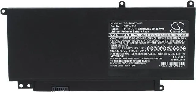 Battery for Asus N750 N750J N750JK N750JK-1A N750JK-DB71 N750JK-T4024H Compatible with the following devices N750, N750J, N750JK, N750JK-1A, N750JK-DB71, N750JK-T4024H, N750JK-T4042H, N750JK-T4043H, N750JK-T4053H, N750JK-T4058H, N750JK-T4087H, N750JK-T4091H, N750JK-T4092H, N750JK-T4093H, N750JK-T4102H, N750JK-T4104H, N750JK-T4105H, N750JK-T4106H, N750JK-T4108H, N750JK-T4109H, N750JK-T4114H, N750JK-T4133H, N750JK-T4134H, N750JK-T4135H, N750JK-T4137H, N750JK-T4138H, N750JK-T4142H, N750JK-T4143D, N750JK-T4145H, N750JK-T4152H, N750JK-T4155H, N750JK-T4157H, N750JK-T4158H, N750JK-T4164H, N750JK-T4166H, N750JK-T4167D, N750JK-T4171H, N750JK-T4185D, N750JK-T4187H, N750JK-T4188H, N750JK-T4193H, N750JK-T4196H, N750JK-T4197H, N750JK-T4211H, N750JK-T4224H, N750JK-T4232H, N750JK-T4234H, N750JK-T4237H, N750JK-T4262H, N750JV, N750JV-1A, N750JV-DB71-CA, N750JV-QB72-CB, N750JV-T4005H, N750JV-T4008H, N750JV-T4009H, N750JV-T4020H, N750JV-T4033H, N750JV-T4042D, N750JV-T4047H, N750JV-T4048H, N750JV-T4055H, N750JV-T4060H, N750JV-T4067H, N750JV-T4069H, N750JV-T4083H, N750JV-T4090H, N750JV-T4095H, N750JV-T4097H, N750JV-T4106H, N750JV-T4110H, N750JV-T4124H, N750JV-T4141H, N750JV-T4145H, N750JV-T4148H, N750JV-T4169H, N750JV-T4172H, N750JV-T4176H, N750JV-T4195H, N750JV-T4213H, N750JV-T4221H, N750Y47JK-SL, N750Y47JV-SL, R750JK, R750JK-T4004H, R750JV, R750JV-T4039H, R750JV-T4121H, R750JV-T4129H, R750JV-T4170H, R750JV-T4171H, R750JV-T4193H, R750JV-T4207H Compatible with Battery Part Numbers 0B200-00400000, C32-N750
