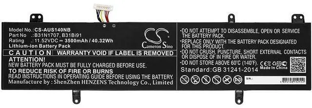 Battery for Asus A411UF F411UF P1410UF S4100V S4100VN8550U S410U S410UA S410UF Compatible with the following devices A411UF, F411UF, P1410UF, S4100V, S4100VN8550U, S410U, S410UA, S410UF, S410UN, S410UQ, S4200UF, Vivobook 411UN, Vivobook A411UF, Vivobook F411UF, Vivobook K501U, Vivobook P1410UF, Vivobook R422UF, VivoBook S14, Vivobook S4100V, Vivobook S4100VN, Vivobook S4200U, Vivobook S4200UF, Vivobook X411UA, Vivobook X411UF, Vivobook X411UQ, X411UA, X411UF, X411UN, X411UQ Compatible with Battery Part Numbers 0B200-02710000, 0B200-02710100M, B31Bi91, B31N1707
