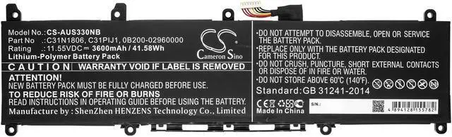 Battery for Asus adol 13 ADOL 13FA ADOL 13FN ADOL 13U ADOL13UN I330FN K330FA Compatible with the following devices adol 13, ADOL 13FA, ADOL 13FN, ADOL 13U, ADOL13UN, I330FN, K330FA, K330FN, R330UN, S330FA, S330FN, S330FN-EY001T, S330FN-EY002T, S330FN-EY005T, S330FN-EY016T, S330UA, S330UA-8130, S330UA-8130GL, S330UA-8130P, S330UA-8250, S330UA-EY003T, S330UA-EY008T, S330UA-EY023T, S330UA-EY024T, S330UA-EY027T, S330UA-EY028T, S330UA-EY029, S330UA-EY030T, S330UA-EY036T, S330UA-EY042T, S330UA-EY046T, S330UA-EY053T, S330UA-EY067T, S330UA-EY301T, S330UA-EY302T, S330UA-EY637T, S330UA-EY953T, S330UA-GS8202T, S330UA-GS8502T, S330UA-RS8203T, V330FA, V330FN, VivoBook S13 S330, VivoBook S13 S330FA, VivoBook S13 S330FA-EY001T, VivoBook S13 S330FA-EY002T, VivoBook S13 S330FA-EY005T, VivoBook S13 S330FA-EY006T, Vivobook S13 S330FA-EY008T, VivoBook S13 S330FA-EY020T, VivoBook S13 S330FA-EY023T, VivoBook S13 S330FA-EY025T, VivoBook S13 S330FA-EY038T, VivoBook S13 S330FA-EY041T, VivoBook S13 S330FA-EY044T, VivoBook S13 S330FA-EY067T, VivoBook S13 S330FA-EY092T, VivoBook S13 S330FA-EY094R, VivoBook S13 S330FA-EY095T, VivoBook S13 S330FA-EY127T, VivoBook S13 S330FA-EY129T, VivoBook S13 S330FA-EY138T, VivoBook S13 S330FA-EY158T, Vivobook S13 S330FA-EY301T, VivoBook S13 S330FA-EY302T, VivoBook S13 S330FA-EY353T, VivoBook S13 S330FA-SS8214T, VivoBook S13 S330FN, VivoBook S13 S330UA, VivoBook S13 S330UA-8130GL, VivoBook S13 S330UA-8130P, VivoBook S13 S330UA-EY007TS, Vivobook S13 S330UA-EY023T, VivoBook S13 S330UA-EY024T, VivoBook S13 S330UA-EY027T, VivoBook S13 S330UA-EY028T, VivoBook S13 S330UA-EY029T, VivoBook S13 S330UA-EY033T, VivoBook S13 S330UA-EY034T, VivoBook S13 S330UA-EY036T, VivoBook S13 S330UA-EY068R, VivoBook S13 S330UA-EY637T, VivoBook S13 S330UA-EY843T, VivoBook S13 S330UA-EY953T, VivoBook S13 S330UA-GS8202T, VivoBook S13 S330UA-RS8203T, VivoBook S13 S330UN-EY001T, VivoBook S13 S330UN-EY006T, VivoBook S13 S330UN-EY008T, VivoBook S13 S330UN-EY010T, VivoBook S13 S330UN-EY024T, VivoBook S13 S330UN-EY027T, VivoBook S13 S330UN-EY036T, VivoBook S13 S330UN-EY037T, X330FA, X330FA-2C, X330FA-2D, X330FA-2G, X330FA-3C, X330FA-3D, X330FA-3G, X330FL, X330FN, X330FN-2C, X330FN-2D, X330FN-2G, X330UA, X330UA-2C, X330UA-2D, X330UA-2G, X330UN, X330UN-2C, X330UN-2D, X330UN-2G Compatible with Battery Part Numbers 0B200-02960000, 0B200-03030000, 0B200-03030100, C31N1806, C31PIJ1