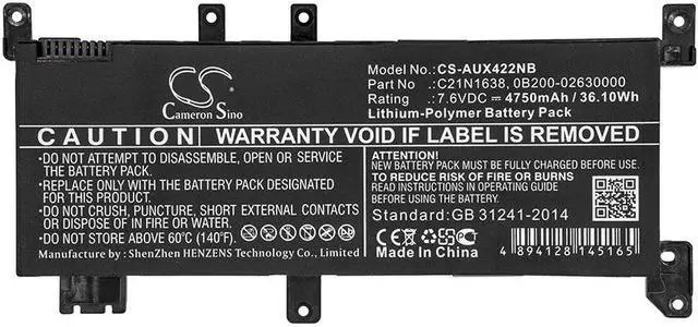 Battery for Asus F442UR VivoBook 14 X442U VivoBook 14 X442UA VivoBook 14 Compatible with the following devices F442UR, VivoBook 14 X442U, VivoBook 14 X442UA, VivoBook 14 X442UA-FA016T, VivoBook 14 X442UA-GA034T, VivoBook 14 X442UN, VivoBook 14 X442UN-AH8203T, VivoBook 14 X442UQ, VivoBook 14 X442UQ-FA005T, VivoBook 14 X442UQ-FA023T, VivoBook 14 X442UR, VivoBook 14 X442UR-FA023T, VivoBook 14 X442UR-GA028T, VivoBook 14 X442UR-GA029T, VivoBook A480U, VivoBook F442U, Vivobook X442, Vivobook X442UA, Vivobook X442UF, VivoBook X442UF-FA002T, VivoBook X442UF-FA006T, Vivobook X442UN, Vivobook X442UQ, Vivobook X442UR, X442UA, X442UA-1B, X442UA-1C, X442UA-3F, X442UA-3G, X442UA-FA015T, X442UA-FA016T, X442UA-FA022T, X442UA-FA054T, X442UA-FA061R, X442UA-FA069R, X442UA-FA070T, X442UA-FA085, X442UA-FA100R, X442UA-FA103T, X442UA-FA111R, X442UA-FA142R, X442UA-FA165T, X442UA-FA185R, X442UA-FA192, X442UA-FA193, X442UA-FA265T, X442UA-FA317R, X442UA-GA022, X442UA-GA061R, X442UA-GA103, X442UA-GA139T, X442UF-1B, X442UF-1C, X442UF-3F, X442UF-3G, X442UF-FA, X442UF-FA001T, X442UF-FA002T, X442UF-FA003T, X442UF-FA004T, X442UF-FA005T, X442UF-FA006T, X442UF-FA057T, X442UN, X442UN-1B, X442UN-AH8203T, X442UN-FA028T, X442UN-FA031T, X442UQ, X442UQ-1A, X442UQ-1B, X442UQ-1C, X442UQ-3F, X442UQ-3G, X442UQ-FA005T, X442UQ-FA006T, X442UQ-FA023T, X442UQ-FA050T, X442UQ-FA053T, X442UQ-FA058T, X442UQ-GA034T, X442UR, X442UR-1B, X442UR-1C, X442UR-3F, X442UR-3G, X442UR-FA023T, X442UR-FA049T, X442UR-FA050T, X442UR-FA051T, X442UR-FA058T, X442UR-GA020, X442UR-GA022, X442UR-GA028T, X442UR-GA029T, X442UR-GA061T, X442UR-GA071T Compatible with Battery Part Numbers 0B200-02630000, C21N1638