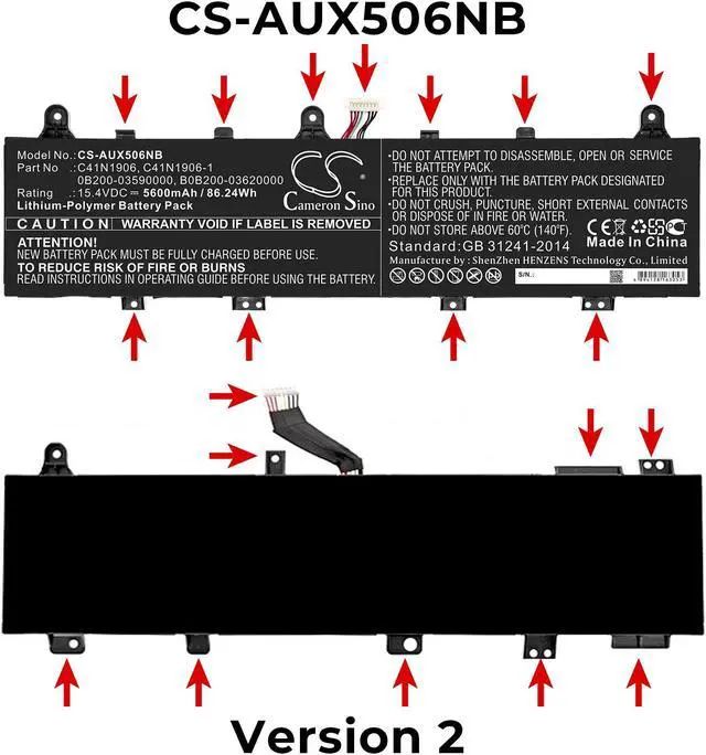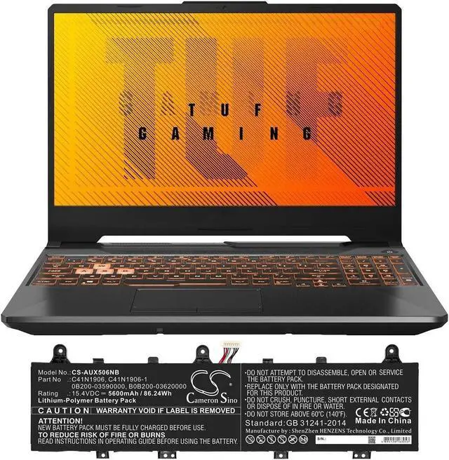 Battery for Asus FA506IV FA566IV FA706IU FX506 FX506IV FX566IV FX706IU FX766IU Compatible with the following devices FA506IV, FA566IV, FA706IU, FX506, FX506IV, FX566IV, FX706IU, FX766IU, ROG Zephyrus Duo 15 GX550, ROG Zephyrus Duo 15 GX550LWS, ROG Zephyrus Duo 15 GX550LWS-H, ROG Zephyrus Duo 15 GX550LWS-X, ROG Zephyrus Duo 15 GX550LXS, TUF A15 FA506QR 2021, TUF A15 FX506IU, TUF A17 FA706IU, TUF A17 FA706IU-AS76, TUF Gaming A15 FA506, TUF Gaming A15 FA506IV, TUF Gaming A15 FA506IV-916512B, TUF Gaming A15 FA506IV-AL011T, TUF Gaming A15 FA506IV-AL032T, TUF Gaming A15 FA506IV-AL064T, TUF Gaming A15 FA506IV-AL173T, TUF Gaming A15 FA506IV-AL991T, TUF Gaming A15 FA506IV-HN185TS, TUF Gaming A15 FA506IV-HN203, TUF Gaming A15 FA506IV-HN223T, TUF Gaming A15 FA506IV-HN256, TUF Gaming A15 FA506IV-HN337TU, TUF Gaming A15 FA506IV-R9R2060, TUF Gaming A15 Fortress Gray, TUF Gaming A17 FA706IU, TUF Gaming A17 FA706IU-H7015T, TUF Gaming A17 FA706IU-H7022T, TUF GAMING A17 FA706IU-H7099T, TUF Gaming A17 FA706IU-H7101T, TUF Gaming A17 FA706IU-H7153, TUF Gaming F15 FX506, TUF Gaming F15 FX506LU, TUF506IV, TUF566IV, TUF706IU, TUF766IU Compatible with Battery Part Numbers 0B200-03590000, B0B200-03620000, C41N1906, C41N1906-1