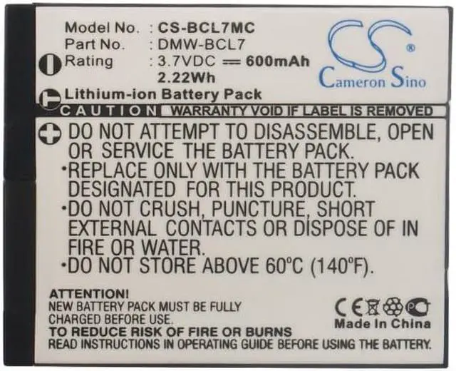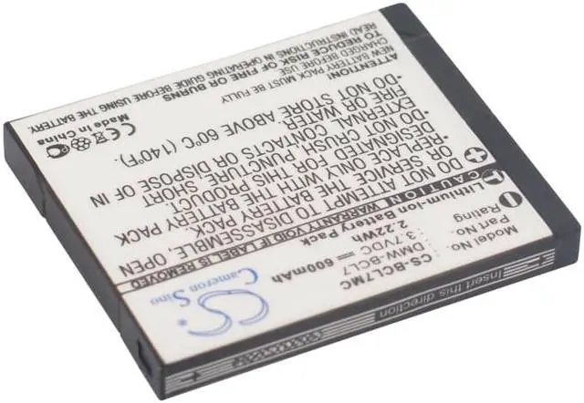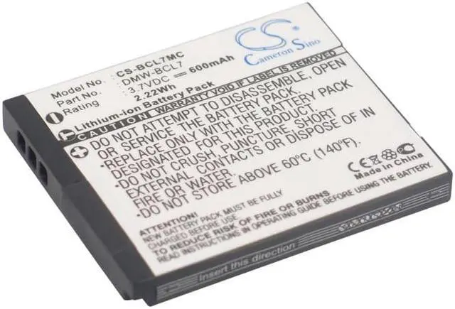 Battery for Panasonic Lumix DMC-F5 Lumix DMC-F5K Lumix DMC-F5P Lumix DMC-F5S Compatible with the following devices Lumix DMC-F5, Lumix DMC-F5K, Lumix DMC-F5P, Lumix DMC-F5S, Lumix DMC-FH10, Lumix DMC-FH10K, Lumix DMC-FH10P, Lumix DMC-FH10V, Lumix DMC-FS50, Lumix DMC-FS50K, Lumix DMC-FS50P, Lumix DMC-FS50S, Lumix DMC-FS50V, Lumix DMC-SZ3, Lumix DMC-SZ3K, Lumix DMC-SZ3P, Lumix DMC-SZ3T, Lumix DMC-SZ3V, Lumix DMC-SZ3W, Lumix DMC-SZ9, Lumix DMC-SZ9K, Lumix DMC-SZ9P, Lumix DMC-SZ9S, Lumix DMC-XS1, Lumix DMC-XS1K, Lumix DMC-XS1R, Lumix DMC-XS1W Compatible with Battery Part Numbers DMW-BCL7, DMW-BCL7E