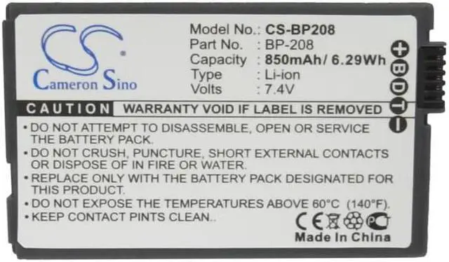 Battery for Canon DC10 DC100 DC20 DC201 DC21 DC210 DC22 DC220 DC230 DC40 DC50 Compatible with the following devices DC10, DC100, DC20, DC201, DC21, DC210, DC22, DC220, DC230, DC40, DC50, DC51, DC95, Elura100, FVM300, iVIS DC200, iVIS DC22, IXY DVS1, MVX1Si, MVX430, MVX450, MVX460, Optura S1 Compatible with Battery Part Numbers BP-208, BP-208DG